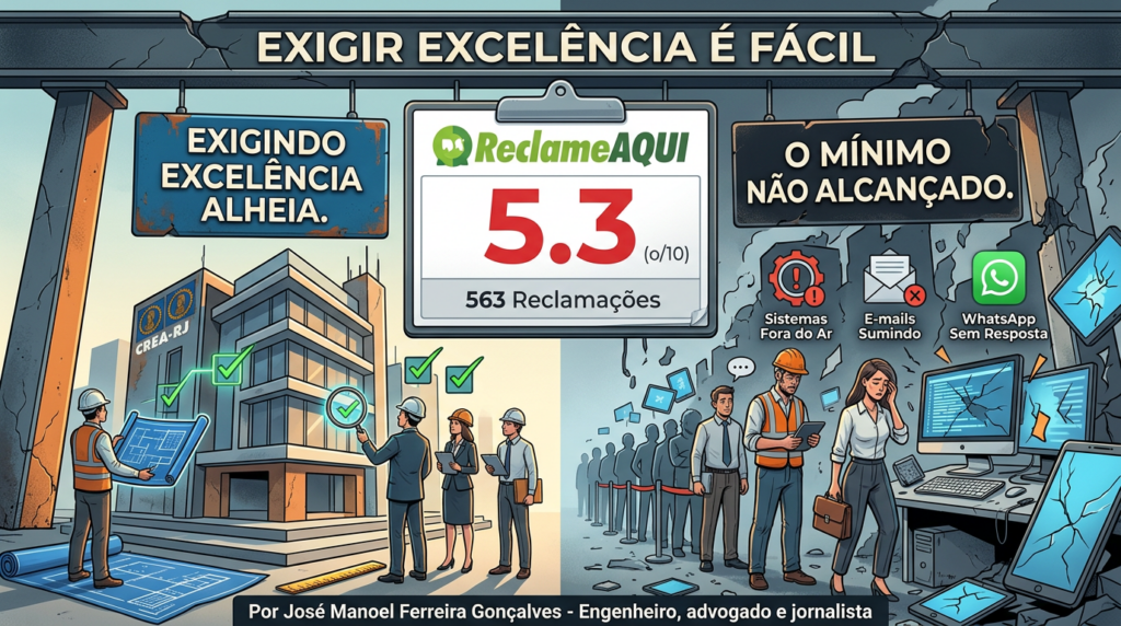 Por José Manoel Ferreira Gonçalves                                                                      Engenheiro, advogado e jornalista O Crea-RJ ostenta no Reclame Aqui uma avaliação que desafia ...