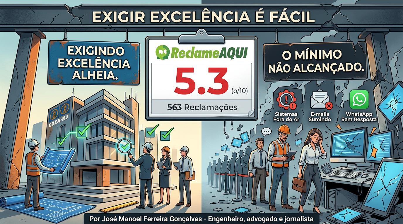 Exigir excelência dos outros é mais fácil do que alcançar o próprio mínimo aceitável. O Crea-RJ demonstra essa verdade amarga diariamente. Enquanto isso, o profissional carioca perde prazos importantes. Perde oportunidades de trabalho. Perde a paciência e a confiança na entidade que deveria representá-lo. A situação exige correção imediata e profunda. O conselho precisa olhar para dentro com o mesmo rigor que usa para olhar para fora. Deve reorganizar processos internos. Capacitar atendentes que não sabem resolver problemas. Modernizar sistemas que travam a cada clique. Agilizar respostas que hoje demoram meses para sair.